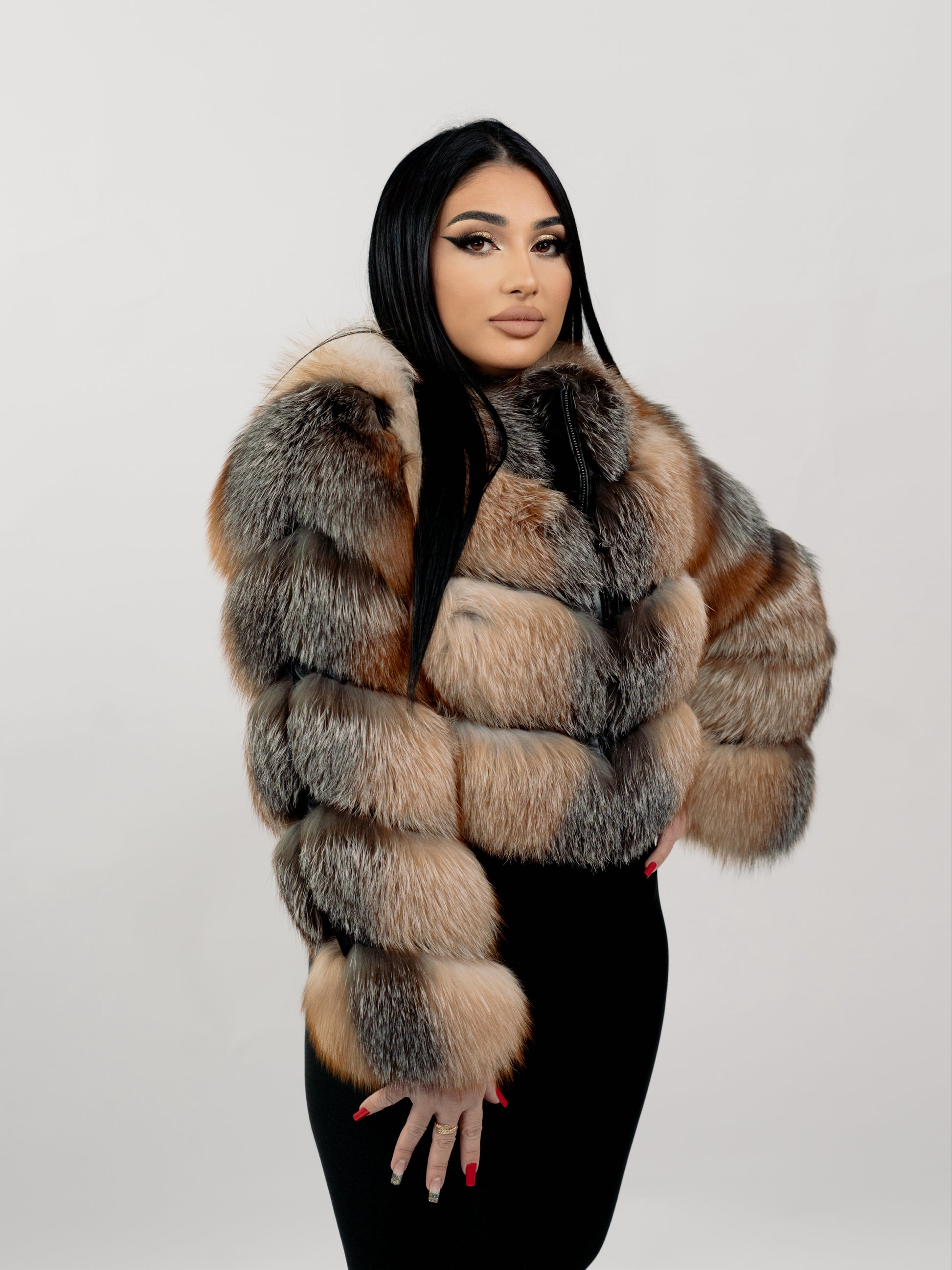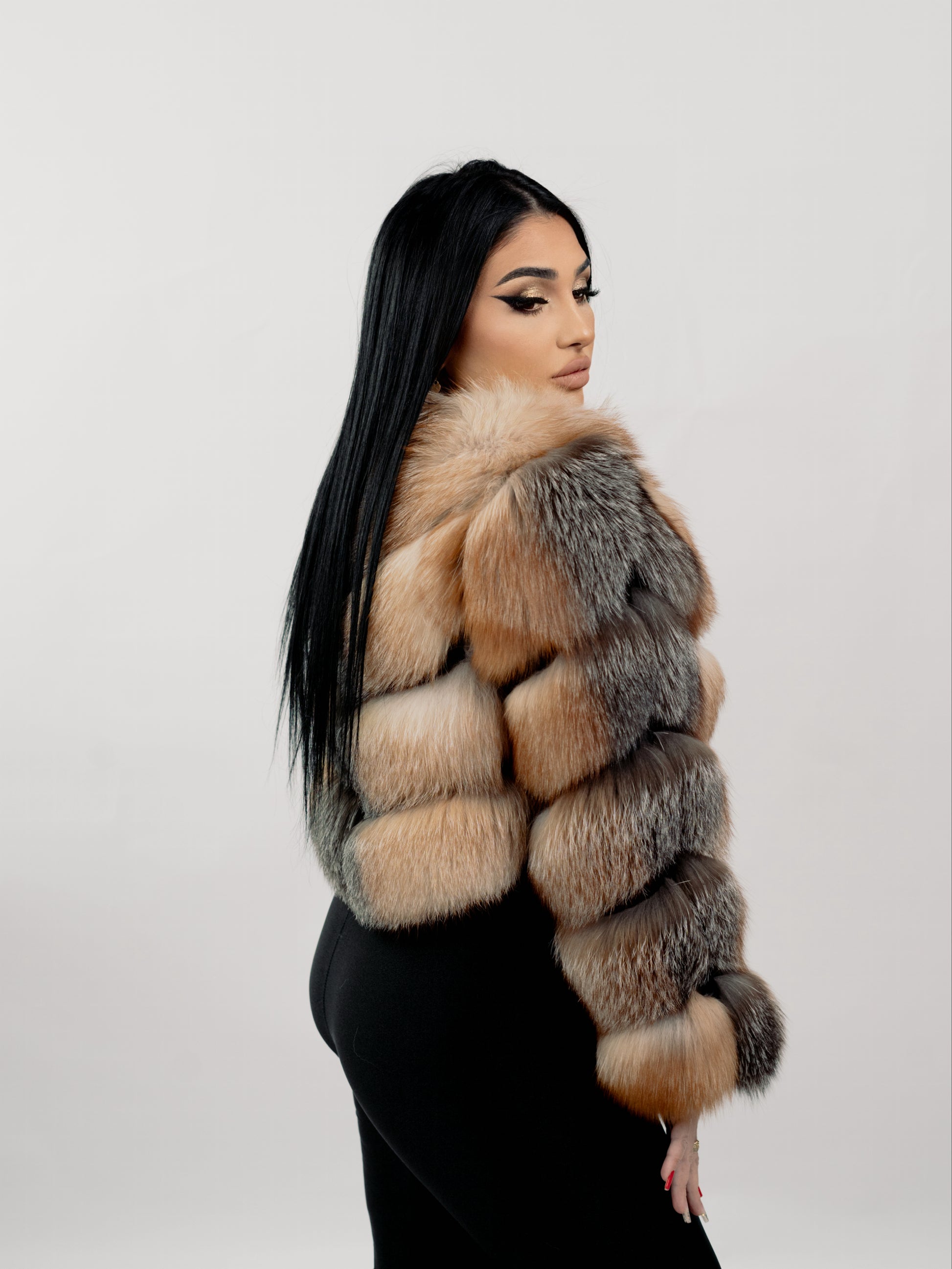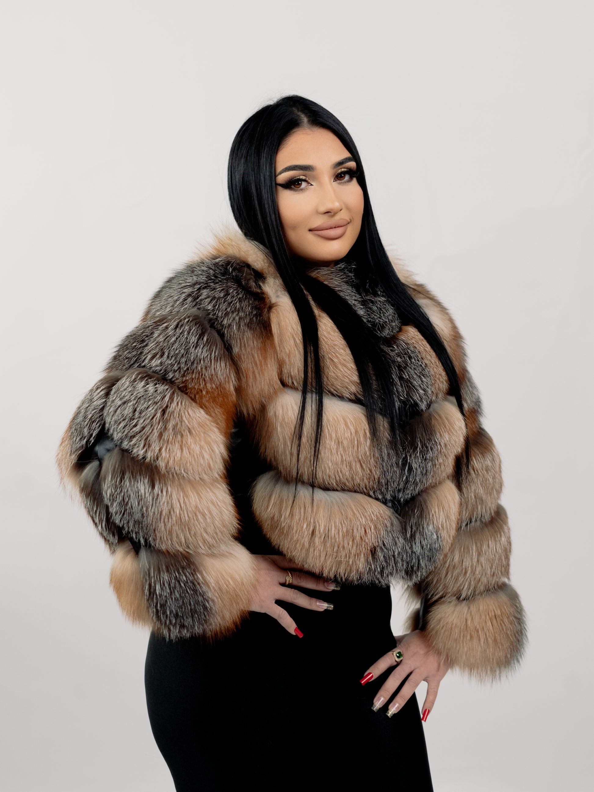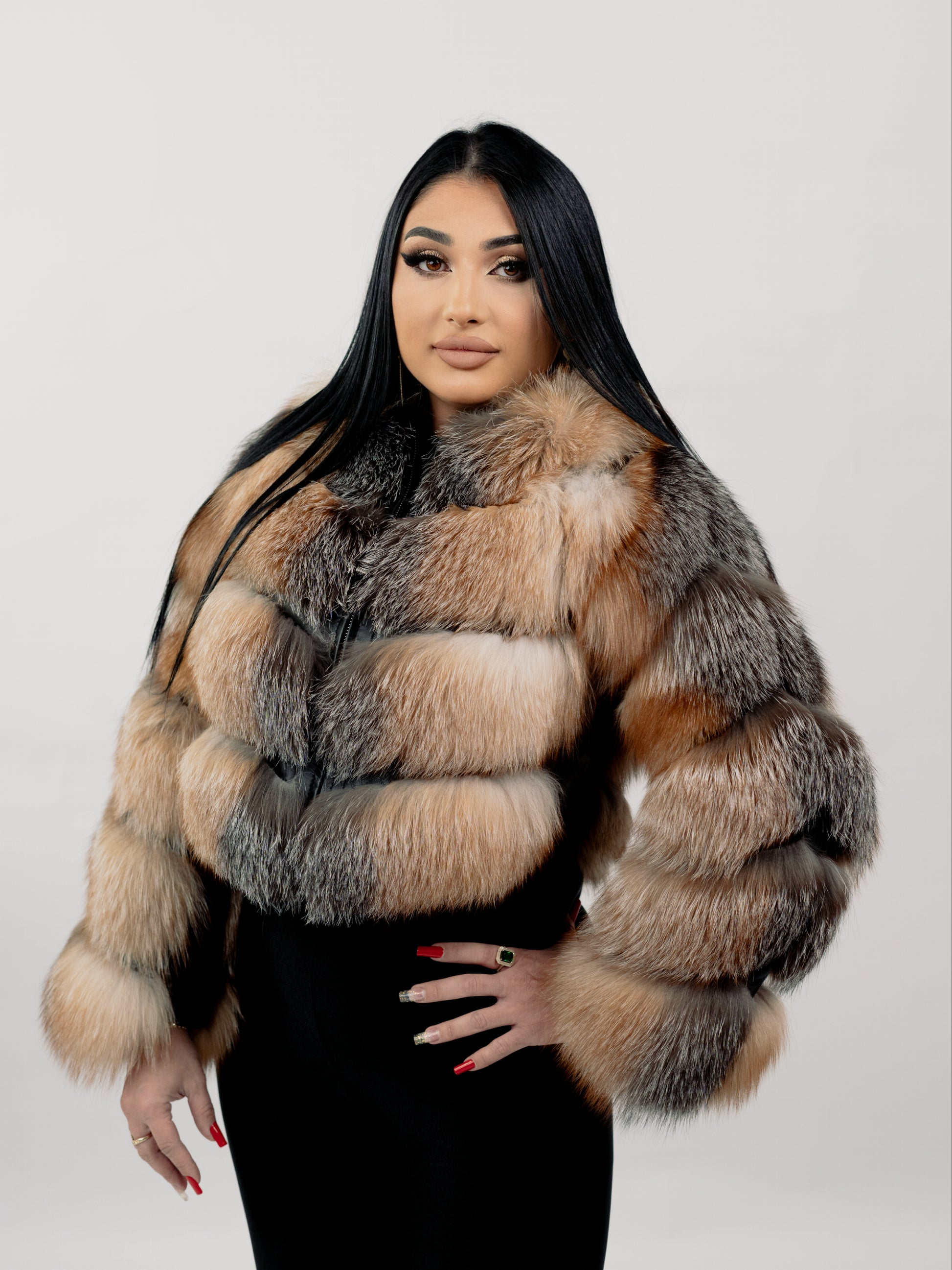 - Descoperă eleganța autentică a luxului cu haina noastră exclusivă din blană naturală de vulpe canadiană.