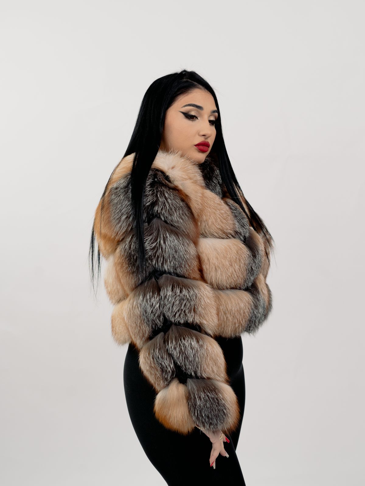 - Descoperă luxul sublim al hainei noastre din blană naturală de vulpe canadiană, un simbol al eleganței rafinate.